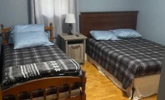 3 bedrooms: 2 single beds 1 queen bed and 2 double beds