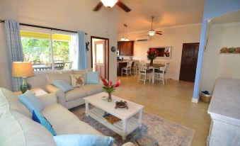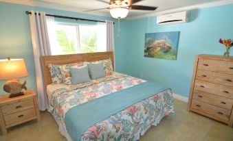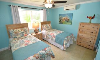 Casa Tortuga is a modern Caribbean beach house steps away from world-famous West Bay Beach. This 2-bedroom, 2-bath second story unit offers privacy along with stunning ocean views. The home features 3 air- units, one in each bedroom and one in the living-dining area. Also 5 ceiling fans located all around the house including the outdoor balcony. Fiber-optic, high speed wifi and cable-tv are included. The living room has a 50” LG flat-panel television with comfortable Bassett furniture couch and loveseat. We have a screened in balcony area, with a bar-height patio set to allow a comfortable pest-free outdoor space.