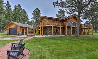 Perfect for family reunions or large groups, Evergreen Lodge is a genuine hand hewn log cabin retreat with 6 bedrooms and 4 baths in 3304 square feet for a genuine Black Hills experience. Nestled in tall, stately pines, the interior features a completely stocked kitchen with a gas stove, dishwasher, drip and Keurig coffee pots, three lounging areas, 2 large Smart TVs, free wifi, indoor dining for 14, and rocking chairs overlooking a quiet meadow. Moving outdoors there is a furnished deck with landscape views, outdoor dining for 12 protected from wind, gas firepit with adirondack chairs, all in a peaceful setting you won't want to leave. But if you do want adventure or sightseeing, the lodge is centrally located to Sylvan Lake, Crazy Horse Memorial, Custer State Park, Needles Highway and only 21 miles from Mount Rushmore National Memorial. Just two miles away you can connect with the Custer State Park spur of the Mickelson Trail. The best of both worlds!About pets:No pets allowed.About checkOut:Check out before 10:00 AM.About children:Children allowed: ages 0-17.Please supervise. No slime, playdoh or glitter..About customRules:Parents, please do not allow your children to use glitter, slime, or playdoh..No red drink/Koolaid. $50 fine for new red stain on carpet. Kids eat in the kitchen or out on the patio.,Sounds really carry in the clear air. Be mindful of those who live across the meadow..About checkIn:Check in after 4:00 PM.About smoking:Smoking is not permitted.About minBookingAge:Minimum age to rent: 25.About events:No events allowed.