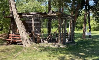 Ultra modern fully equipped surrounded by nature & golf course. Great outdoor space. We loved the fire pit, chicken coop & privacy of this hide away. The tree house room was the perfect little spot to get away from everyone else. Marie was excellent and super detailed in her check in information. Highly recommend