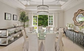 This stunning, sumptuous five-bedroom villa has two full master suites and sleeps ten, in unbridled luxury. A palatial indoor open-air pool offers maximum privacy with the added advantage of a retractable canopy for full shade. The property is set in immaculate, landscaped tropical gardens within a private gated community, not accessible by the public. It is located just minutes from the prestigious Royal Westmoreland Golf Club, Sugar Hill Estate and Apes Hill Polo Club and is within easy reach of the West Coast beaches, luxury shopping, fine dining and nightlife. With its stylish interiors and thoughtful touches, this beautiful Barbados home takes Caribbean villa living to the next level.