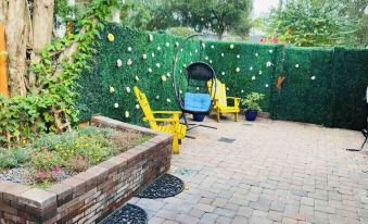 Your backyard oasis awaits you, with queen size 10in memory foam swing mattress, full outdoor kitchen, 65in TV along with a 2 hole putting green and flower wall. You can relax and enjoy the warm florida winters with a nice bbq.