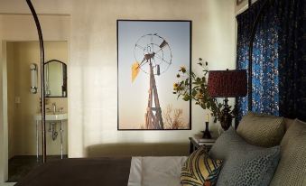 Flintlock is the height of luxury in a bucolic setting. Wake to the sounds of birds chirping, cattle lowing and a wonderful nights rest in a guesthouse designed by a world renowned interior designer. Flintlock is a destination for couples wanting to escape big city life and who love the great outdoors and ranch living. Sunset views from the guesthouse include a fire pit, and private seating area.