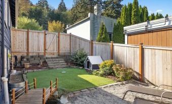 This unique charming getaway will make you feel right at home. Prime location just a quick walk to wineries, the Burke-Gilman Trail system, restaurants and more! Full kitchen and thoughtful amenities throughout. Back yard oasis to enjoy a meal, sit around the fire pit or relax in the sun. Pet friendly with miles of walking trails accessible from the home.About pets:Pets allowed: dogs less than 50 lbs per pet (limit 2 pets total).About checkOut:Check out before 11:00 AM.About children:Children allowed: ages 0-17.About checkIn:Check in after 4:00 PM.About smoking:Smoking is not permitted.About minBookingAge:Minimum age to rent: 21.About events:No events allowed.
