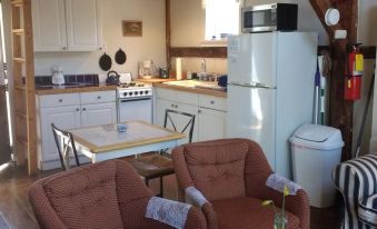 ..........Originally built in the 1870's as a small barn on the estate. This 1870's vintage antique post and beam barn has been fully renovated, while preserving it's original charm - new bath, new kitchen, restored antique hardwood floors, queen size pillow top mattress in the sleeping loft. The sleeping loft is accessed by a ladder. On the ground floor there is a full size Murphy bed.