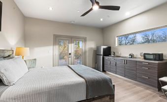 Nestled beneath the stunning Moondance Red Rock Retreat, the Moondance Studio Retreat is a peaceful and private lower-level suite, perfect for couples, solo travelers, or a small getaway. Thoughtfully designed for comfort and convenience, this retreat offers modern amenities, a serene outdoor patio, and access to a majestic shared outdoor space under Sedona’s starry skies.