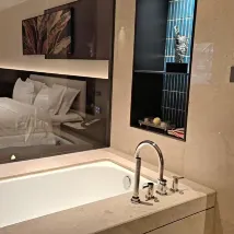 Suasananya nyaman dan terlihat cukup baru. Semua stafnya sangat ramah. Parkirnya juga nyaman, baik di atas maupun di bawah tanah. Ada minimarket di lantai bawah, pusat kebugaran di lantai lima, dan kolam renang di lantai ba*****t. Kamarnya juga cukup luas. Saya pikir hotel jaringan lain akan mematok harga lebih dari 400, hampir 500, jadi saya memutuskan untuk mencoba hotel ini, yang sudah berdiri selama 25 tahun. Saya penasaran kenapa hotel baru hanya mendapat rating 4,7, jadi saya datang ke sini karena penasaran. Setelah check-in, ternyata hotel ini melebihi ekspektasi saya.