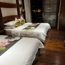 Tanggapan dari Properti: Hotel mungil nan ajaib ini sungguh permata! Perpaduan tradisi Tionghoa di dalamnya sungguh luar biasa—mulai dari ukiran kayu yang rumit di pintu dan jendela hingga kaligrafi Tionghoa yang indah menghiasi dinding, setiap sudut memancarkan pesona budaya yang elegan. Begitu melangkah masuk, saya merasa seperti dibawa ke halaman tradisional Tionghoa yang tenang. Yang lebih mengesankan lagi adalah lokasinya yang tak tertandingi. Hanya 15 meter dari pintu masuk desa, menjadikannya sangat strategis. Baik untuk menjelajahi pasar desa yang ramai di pagi hari maupun berjalan-jalan santai menikmati suasana malam yang memesona, saya dapat mencapai jantung desa hanya dalam hitungan detik. Sungguh luar biasa kembali ke hotel setelah beraktivitas di malam hari, karena suasana damai dan nyaman yang ditawarkan sungguh sempurna untuk bersantai. Staf di sini juga patut diacungi jempol. Keramahan mereka yang hangat membuat saya merasa seperti di rumah sendiri. Mereka selalu siap memberikan tips bermanfaat tentang tempat-tempat terbaik di desa dan hidangan lokal yang patut dicoba. Kamar-kamarnya tak hanya bersih dan nyaman, tetapi juga didekorasi dengan elemen tradisional Tiongkok, menciptakan perpaduan harmonis antara kenyamanan modern dan ***a klasik. Secara keseluruhan, hotel ini menawarkan pengalaman tak terlupakan yang memadukan pengalaman budaya, lokasi prima, dan layanan terbaik. Saya tak bisa meminta tempat menginap yang lebih baik selama kunjungan saya, dan saya sangat merekomendasikannya kepada siapa pun yang mencari akomodasi autentik dan nyaman!