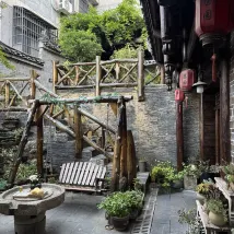 B&B yang kami tempati saat tiba di Kota Furong bernuansa kuno. Pemiliknya, kakak beradik, juga sangat ramah. Kami memilih kamar twin, dan pemiliknya juga memberi kami kamar dengan paviliun, yang sangat nyaman. Jika cuaca tidak terlalu panas, saya ingin sekali berlama-lama di halaman dan menikmati pemandangan di luar. Semuanya baik-baik saja, kecuali pilihan menu sarapannya yang sedikit, yang agak disayangkan. Namun, lokasinya bagus dan sangat dekat dengan pintu masuk taman.