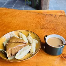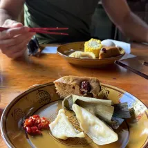 Dan staf homestay yang masih muda merekomendasikan restoran TERBAIK yang pernah ada. Restoran autentik lokal itu menyajikan rebung tumis terlezat yang pernah kami makan. Keramahan homestaynya 10 dari 10. Mereka bahkan menyediakan koleksi pakaian adat untuk para tamu yang bisa digunakan untuk berfoto. Dan ini adalah hadiah perpisahan yang sangat indah untuk kami.