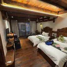 Tanggapan dari Properti: Terima kasih banyak atas ulasan yang luar biasa ini—kami sangat senang mendengar Anda menikmati waktu yang luar biasa bersama kami! Kami sangat senang mengetahui bahwa teh buatan sendiri dan keramahan resepsionis meninggalkan kesan yang mendalam, dan hidangan segar dan lezat dari bibi sarapan membuat bangun pagi terasa berharga—dia akan sangat senang mendengar pujian Anda! Pengemudi kami pasti akan tersenyum lebar mendengar pujian Anda juga. Dia sangat bangga memastikan tamu merasa nyaman, baik itu menjaga mobil tetap bersih, memperlambat laju kendaraan untuk berfoto, atau membawakan air dingin di hari yang terik—kami akan menyampaikan rasa terima kasih Anda! Kami juga sangat senang Anda menyukai kamar-kamar kayunya, yang luas dan cukup bersih sehingga pacar Anda bisa "menjilati lantai" (itu pujian tertinggi untuk tim housekeeping kami! 😊) dan perpaduan toilet modern dengan estetika kayu tradisional. Halamannya memang dirancang untuk dinikmati, jadi kami senang foto-fotonya sesuai dengan aslinya. Terima kasih telah memilih untuk menginap bersama kami selama perjalanan Anda ke Furong—sungguh berarti kami bisa menjadi bagian dari pengalaman tak terlupakan Anda. Kami tak sabar untuk menyambut Anda kembali suatu hari nanti!