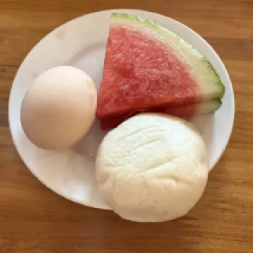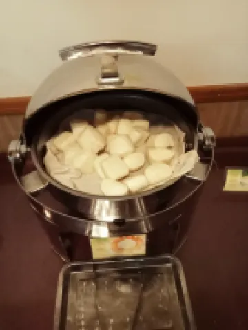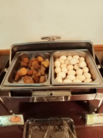 Breakfast from Hotel comprised of a great variety with soy milk, coffee, tea, bee hoon soup, steam sweet potato and egg. Banana fruit is provided too.