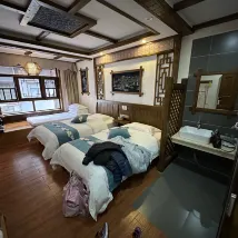 Senang melihat kami datang setelah membaca ulasan di Ctrip.com. Kami khawatir keadaan akan buruk saat kami sampai di sana. Kami memeriksa kamarnya terlebih dahulu, dan tampak bersih dan rapi. Sungguh bagus, jadi kami check in dengan percaya diri. Fasilitas kamar sama seperti pada gambar. Lokasinya sangat dekat dengan tempat wisata tersebut. Ada jalan komersial di lantai bawah. Masih terang benderang pada pukul 11 malam, tetapi di lantai atas tidak berisik. Bosnya sangat antusias. Dia bertanya tentang rencana perjalanan kami dan merencanakan rencana perjalanan secara wajar sesuai dengan jumlah hari. Ada peta rute. Daerah pemandangannya sangat luas, dan dengan peta yang diberikan oleh bos, kami dapat menikmati tur tanpa pemandu wisata. Kami tidak mengambil jalan memutar lagi. Pada malam kedua, anak saya diare, dan bos membalas tepat pukul 12 malam. Karena alasan kesehatan, kami menginap di hotel untuk satu malam lagi. Sangat puas