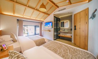房間的房型很滿意呢,裝修設計都很大方精緻,住起來有一種舒適愜意的感覺,一出門就有沙灘,行程很方便,推薦
