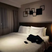 Nyaman untuk bepergian dari perbatasan, sikap pelayanan baik, ***a hotel bagus, fasilitas lengkap, ada ruang laundry pengantar robot, ada dua peralatan cuci dan pengering yang nyaman, mesin kopi swalayan, check-in penuh perhatian cepat, kamarnya bersih dan rapi, internetnya kuat, tempat tidurnya sangat nyaman Kamar mandi besar dan bersih💯