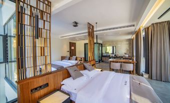 房間很寬敞舒適,床也夠大。就是隔音效果差了點。周邊環境空氣一流。店裡飯菜食材都很好吃,就是性價比稍微差了那麼一點點。但值得一提的是老闆一家人超好,免費接送我們去景區遊船,免了我們找位置停車的煩惱。還帶我們去上頂看不一樣的風景,真的很nice。酒店樓下就是玩山水,往上走100米和300米處都有玩山水的地方,超方便。下次有機會還來住這裏,真的推薦這家店。