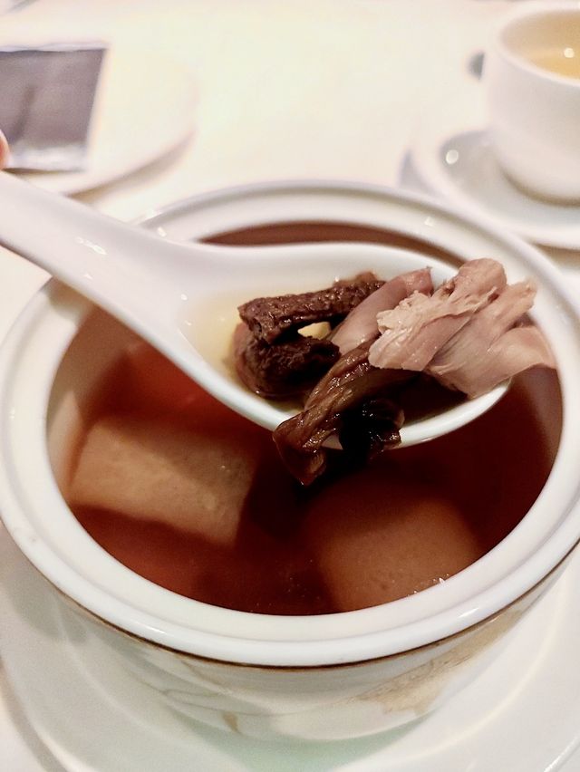 🎉Celebrating family birthday, so went to hotel staycations~ Since the package includes meal vouchers, I chose to eat Chinese food for dinner "🌃Beautiful view · Good service · Exquisite Chinese cuisine" is - "Tian Wai Tian"                  —— This time I ordered the "🦆 Sliced ​​Duck Dinner Set", there are 6 dishes from starter to dessert ~ "🥒 Cucumber scallops in Sichuan sauce, whole bacon chicken tart, honey barbecued pork" As a starter is a very good start 👍🏻 from light to rich ~ Cucumber scallops are slightly spicy but fresh, very appetizing ~ Bacon and chicken tart, sweet and salty, crispy and smoky combination, every part is impeccable, proving that their dim sum is excellent🌟 🍯 Honey char siu, honey-flavored char siu and soft enough, beautiful fork is to such quality! "🦆Hong Kong Style Sliced ​​Duck" Seriously I don't have high expectations for this one, because I've seen a lot of people's feedback before But after trying I think it's not bad 🤔 quality is not up to the specialty sliced ​​duck specialty store kind of good food, but than many Chinese restaurants do better ~ The dim sum skin is hot and thin and smooth enough. It's great for wrapping duck 😋😋 As for the key duck, the taste is ok no duck greasy taste, ❌ the defeat is the skin is not crispy enough, the duck meat is not enough Juicy ~ "🐦Deer Antler Mushroom and Bamboo Shoot Stewed French Quail" 💯 points of stew, highly recommended 🌟🌟🌟🌟🌟 The meat of quail has its own unique taste. The meat is sweet and tender It is also high in protein, low in fat, rich in nutrients and nourishing And the deer antler mushroom once opened the lid mushroom fragrance fragrance overflowing ~ 🔥 The heat of the stew is enough, the soup is really good to drink, warm to the heart ❤️ "Da thousand burst shrimp ball🦐" It doesn't have the style of a big stall, but the two different styles can't be compared😝 The taste is spicy and tasty enough, the prawns are big and bouncy enough Unfortunately, it's really spicy 🌶 children can't eat it ~ "🦀Garlic Scallops and Crab Meat Stir-fried Seedlings" 🤩 Super amazing fried rice! The silkworms are fried dry and clearly, and the crab meat is very chewy when sandwiched between them Take a bite and feel that the rice will dance in your mouth 💃🏻💃🏻😋😋 "🥭 Mandarin and Mango with Beauty Points Double Brilliance" Originally, I was very satisfied and happy to eat fried rice But the whole meal was actually very good at the beginning and not at the end... the bad thing is this dessert😣 The sweet and sour mangosteen is as thin as water, tasteless and tasteless, the osmanthus cake I thought was jelly candy, the most similar walnut cake brought the taste of my previous 💙 cans of cookies at most 🤭🤭 After talking about eating, I 👍🏻 praised their service. Since there is a family birthday🎂, the restaurant specially sent champagne 🍾️ almond dessert and 🍑 longevity bun ~ Worth mentioning the sashimi bun was delicious (since the dessert was too disappointing I didn’t have the heart to take a picture of the bun). The crust of the bun is very fragrant and smooth, the lotus seed paste filling is fragrant and not too sweet, and it is served with beautiful salted egg yolk😋 What's more, my daughter accidentally spilled all the cup 🍎 apple juice 🧃 she immediately gave me a second cup ~ Even if the whole place is full, they carefully observe each table, instantly meet the requirements of each customer, worthy of praise 👍🏻👍🏻👍🏻 Tin Wai Tin (Tsim Sha Tsui) 📍28/F, Victoria Harbor Plaza, 17 Science Museum Road, Tsim Sha Tsui #landscape restaurant #high altitude view #see the night view here is super beautiful #romantic date restaurant #hotelcation #foodie