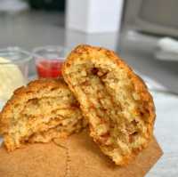 Grandma's Scone sells English muffins in many styles, such as grapefruit oolong, hojicha marshmallow, hazelnut cocoa, earl gray tea, etc. If you want to eat, you can order online or go to Kaffeine, a coffee shop in Sheung Wan, to eat slowly ☕️ 。 English muffins $70/2 pieces The price includes Cotted Cream and strawberry jam, rich and light, sour and refreshing 😋 。 Baileys & Lotus Biscoff|7.5/10 The muffin looks different from traditional muffins, a bit like hemisphere ice cream shape, crispy outer layer, moist and fluffy in the middle, not adding eggs, but more prominent butter flavor☺️ The surface and inner layer added Baileys sweet wine, rich aroma, Lotus scones with crispy taste, the staff will help heat, so overall good 。 Yuzu & Oolong Tea|7.5/10 At first I thought I was wrong 🙈 Green thought it was matcha flavor, but cut open to smell a faint grapefruit flavor, the more you eat grapefruit flavor the stronger, on the contrary, the oolong tea flavor is slightly covered, muffins even after reheating, still crispy outside and fluffy inside #localtour #cafe #summerfood recommendations #foodie #summergoodplaces