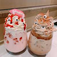 👻Dazzling Cafe Halloween🎃 is coming, this restaurant has launched a Halloween package for 2, in addition to this restaurant's delicious pasta, there are also cute Halloween desserts and desserts to eat! The 2-person set includes 🥗 salad, appetizer, 2 🍝 pasta, 🍨 dessert and two drinks! Spiced Chicken Leg Caesar Salad The salad🥗 is sprinkled with salted egg yolk, it tastes delicious, plus the salad vegetables mixed with Caesar salad dressing, the taste is fresh enough! Plus the chicken steak dipped in salted egg yolk, tastes fragrant! Mexican style cheese pizza Crispy crust, sandwiched with melted cheese🧀, served with tuna salad dressing and salsa, sour and appetizing! Tomato Prawn Pasta Sour and flavorful 🍅tomato crushed sauce, stir in pasta, make the pasta taste appetizing! 🦐 The shrimp meat is crispy and tastes delicious! Green Sauce Creamy Chicken Leg Pasta The spaghetti is mixed with green sauce and pine nuts, the taste is fresh and chewy, plus the fried 🐓 chicken steak, it tastes good! The Ghost Cemetery It's time for dessert, this 👻 decorated cute dessert, it tastes golden sand hazelnut flavor, cream inside is 🍯 honey flavored grainy toast, each grain in addition to the sweetness of honey, also has 🌰 golden sand hazelnut flavor, great! Served with 🍨 chocolate flavored ice cream, the overall has a very strong 🍫 chocolate flavor, great! Berry monster This Halloween special drink is 🍓strawberry milk flavor, with a 👄denture pacifier candy on top, very cute! Lu Mo This special drink is Merlot flavor, the face has a cream that looks like 🧠brain, the drink is Merlot chocolate flavor, with a lot of Merlot powder, making the drink very rich! 📍Address: Shop 313-314, 3/F, Fort Royal, 311 Gloucester Road, Causeway Bay #Halloween #foodie