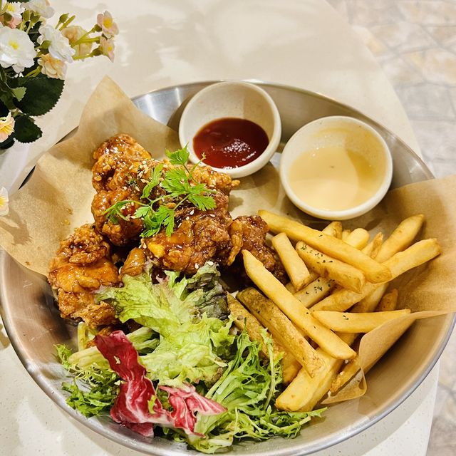 Today, my friends and I went to a restaurant in Festival Walk called "Terrace in seaside" which specializes in high-quality Korean cuisine to enjoy a beautiful and exquisite Korean meal. The restaurant is dreamily decorated with orange citrus as embellishments, the environment is stylish, the seats are spacious and comfortable, and the waiters are attentive and polite. Our group of two tried the following dishes: 1️⃣ Korean Cockle Rice $198 The freshness of the clams and the spicy flavor of the chili sauce combine perfectly, giving people a unique flavor experience. The rice in the bibimbap was fluffy yet chewy, and went perfectly with the clams and sauce. 2️⃣ Half portion of boneless fried chicken (Suwon-style beef rib sauce fried chicken) $108 This dish is made with boneless chicken, the skin is fried to a golden crispy texture, and the meat inside is tender and juicy. 3️⃣Fantasy Ice Cream Brownie $72 The brownie is crispy on the outside, moist on the inside, and full of chocolate aroma. Paired with the smooth ice cream, the cool taste forms a perfect contrast with the warmth of the brownie. 4️⃣Strawberry Honey Waffle $122 Famous for its soft waffle texture and the sweet and sour taste of fresh strawberries. The waffle is golden and crispy on the outside and soft and chewy on the inside. You can feel the aroma and taste of the waffle in every bite. 5️⃣Jeju Ganqiao Yogurt $68 This cheese has a smooth texture and a soft taste, with the fragrance of Ganqiao and a slightly sour taste. 6️⃣ Matcha Citrus Honeydew Ice $72 This drink has a refreshing taste, with the rich aroma of matcha and the sweet and sour taste of citrus, which is very appetizing. 📍Terrace in seaside (Festival Walk) (Kowloon Tong): Shop LG2-26, LG2/F, Festival Walk, 80 Tat Chee Avenue, Kowloon Tong #Terraceinseaside #KoreanCook #KowloonTongFood #FestivalWalkFood #FriedChicken #Halloween2023