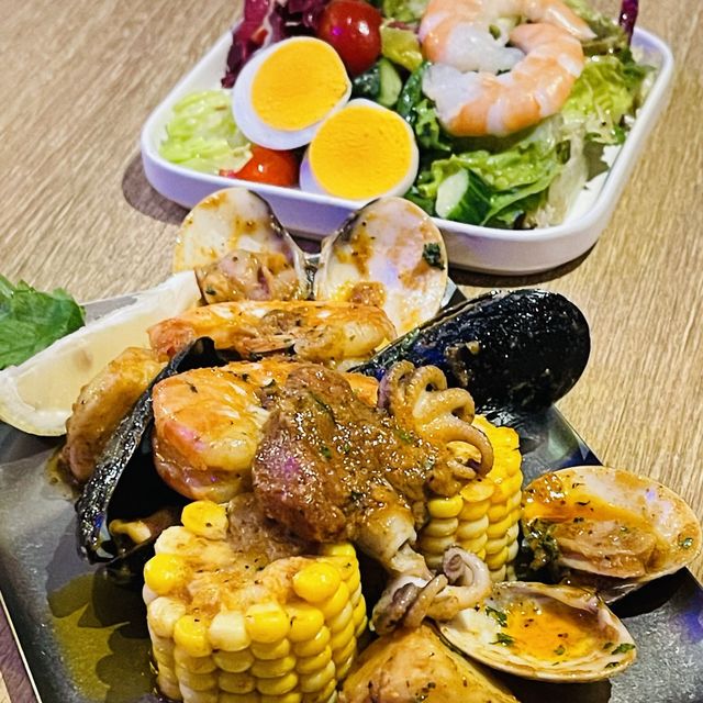 Located in Causeway Bay, "Musicbox Grill House & Bar" is a music-themed American restaurant. The environment has a DJ's playing location Focusing on authentic southern American dishes, seafood and barbecue, the best is the steak, basically a must-eat, here is also known as the top ten best barbecue restaurants in Hong Kong, you can imagine how high the quality 🌟 Recently also launched a chef recommended Menu super cheap, package contains soup, salad, Shake Shake seafood platter, main steak, Italian wontons, dessert and drinks, each only $ 398, usually eat a steak is almost this price, sincerely recommend super high value for money 👍🏻 🌟Chef’s Tasting Menu ▪️ Old Bay Corn Weekly Soup Boiled with corn and potatoes, the taste carries the sweetness of fragrant corn, soft and smooth, and served with cream and bacon cubes, and a crispy garlic bread, super good Added another bowl for $68 ▪️ Prawn Chef Salad The salad vegetables and small tomatoes were very crisp and fresh, served with eggs and bouncy fresh shrimp, the salad used black vinegar and olive oil, very appetizing ▪️Seafood Platter (Cajun or Garlic Butter) Like the Shake Shake seafood, with prawns, mussels, mussels, sausages, potatoes, and corn, we ordered Cajun sauce, which was spicy and tasty, with an American flair ▪️120 Day Grain Fed Argentine Angus Ribeye Steak (8 oz) Upgrade to: 12oz + $88 Come here is a must-eat steak, we ordered five percent cooked, grilled outer layer, tender meat, soft and tender beef flavor, although not the highest-class steak in the restaurant, but has been excellent, steak can be dipped in sea salt, mustard or barbecue sauce ▪️Black Truffle Italian Wontons The smoky and tough egg-flavored crust, surrounded by a rich black truffle cream sauce, one bite at a time, delicious ▪️French Caramel Coulis The top is crispy caramel, sweet and crisp, smooth poached egg, rich vanilla and egg flavor in every bite, and accompanied by fresh strawberries and blueberries, the dessert is just as high quality ▪️After-meal snacks with coffee or tea, or other drinks for an additional fee Tiffany $58 (package price) The powder blue Cocktail, with rum, Curacao blue wine, fresh lemon juice, pineapple juice, cream, syrup, tastes a bit like cotton candy sweet and slightly alcoholic, good ▪️ Fish and chips $168 The shopkeeper recommended that if you like to eat fish must eat this Fish and Chips, it is really delicious, crispy thin and crispy, wrapped in hot super tender Juicy and fresh fish meat, dipped in tartar sauce, eat the number one flavor, fried thick fries certainly not, crispy outside and soft inside 🏛️The Musicbox Grill House & Bar 📍8/F, The L.Square, 459-461 Peak Road, Causeway Bay #themusicbocgrillhouseandbar #steakhouse #steak #fishandchips #seafood #Causeway Bay recommendation #koc #kol #foodkol #foodlovers #blogger #foodblogger #foodkol #food #foodie #foodlover #foodforfoodies #hkfoodblog #hkfoodpic #hkfoodlovers #hkfoodie #hongkongfood #camerafoodfirst #EatGoodEveryday series #lonely foodie