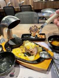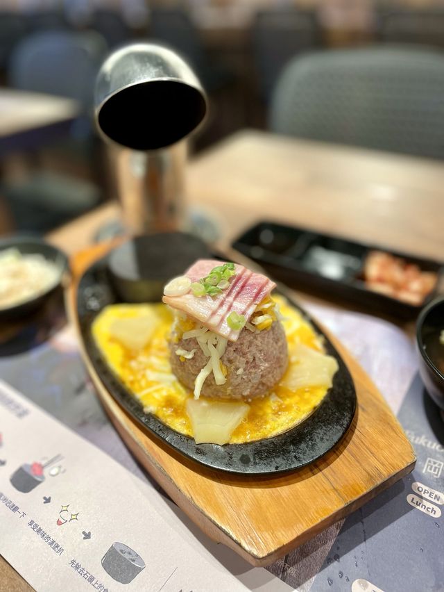 I saw this burger and steak specialist shop online. It's very special I've been bookmarking it in my mind so I'll eat it when I leave Mong Kok I finally got a friend to eat together today😋 💫 Two-person set $366 🌟Pineapple Bacon Wagyu Burger Steak (Medium) The iron plate is covered with egg batter 🥚, pineapple 🍍, bacon 🥓 and Wagyu burger steak and a round hot stone The way to eat is to first align the suction tube and the hot stone position 💨 Then put the appropriate amount of hamburger steak flat on the stone and fry until cooked The burger steak is sweet and delicious 🥰 When frying the oil slowly flows to the egg batter So that the egg batter can be fried to a little crispy 😉 Adding pineapple can reduce the greasiness. It's a great match 🌟Cheese Egg Garlic Wagyu Burger Steak (Medium) This is using egg batter with lots of garlic slices🧄 So more tasty than pineapple bacon 🌟Cheese Bubble Pork Donburi The rice bowl is covered with cheese🧀, kimchi, and pork A little spicy, perfect with rice 🍚 And also a big bowl of rice The meal for two already has a piece of burger steak per person It's just right to share a bowl of rice 🌟Drinks The weather is so hot we added $18 for a special drink 🍹 The sweet and sour grapefruit drink is great for quenching thirst The thyme specialty drink is very refreshing The set also includes appetizers such as soup, kimchi, and cauliflower in sesame sauce Also provide barbecue sauce, salt can be ordered sauce freshness Personally, I think it's delicious without adding it😄 The decoration of the restaurant is simple. Each table has an exhaust fan so there won't be a lot of grease smoke The staff will also take the initiative to help you change the hot stone It's delicious and fun. It feels very special🤗 📍Fukuoka Burger Steak (Hong Wai Building) (Mong Kok) Shop 7, G/F, Hong Wai Building, 3-5 Garden Street, Mong Kok #Autumn Good Places