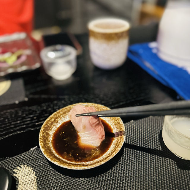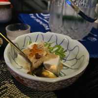 My colleague is last day today, decided to comfort him and take him to eat good food☺️ Restaurant🍴 located in Mong Kok Bai Fu Street, the place is very easy to find 😉 The door is decorated in Japanese style, divided into two floors, downstairs is a bar table design, upstairs is half tatami seating, and there is a big moon, very suitable for taking pictures 🥰 like to check in people must visit 👍 As for the food, they have a lunch time set, the price is about $78-188, which is good 😋 There is a set for two, $438 Crab meat and sesame tofu The tofu is tender and smooth, with crab meat and sesame sauce, which immediately opens up my appetite🤭 Seasonal oysters This oyster is super amazing🤤🤤 Must-try recommendation👍 The oysters🦪 themselves are already very fresh, the restaurant adds a very fresh grapefruit jelly, it is simply the finishing touch, and the grapefruit flavored jelly makes the taste richer💯 Seasonal sashimi (3 points) salmon The flesh is thick and tender, very fresh and sweet Sweet shrimp The flesh is fine, the taste is sweet and very fresh Oily fish The bite is sweet, every mouthful is filled with the aroma of fish oil, and the taste is refreshing☺️ Chef's Pick grilled food (10 skewers) Ten skewers are all chef's selection, eat with a little burnt flavor, grilled to rock good 🥰 Personally like to grill a mouthful of beef fillet and chicken wings 🤤 beef fillet is very fragrant beef, at the same time tender and juice 😋 Two bowls of Inari Udon, a self-selected soup Wild vegetable beef or wild vegetable char siu, the portion is small and the bowl is just right, because eating here is almost full 🥰 Inari Udon is really unbeatable 😍 very bouncy dessert The famous fern cake in Japan is soft and soft 😋 There are two flavors The tuna cheeks are crispy This is for a limited time only and it tastes pretty cool Northern Akita turbid wine 300ml How can you eat skewers without ordering wine🤭 This rice wine is clear and mellow, the wine taste is not very heavy👍 Even if it is not very good to drink, it is no problem 📍Moon furnace. Duan Yau (Mong Kok) Shop 9, G/F, Yi Hing Building, 2-24 Bai Fu Street, Mong Kok #Japanese #fudonyaki #high quality #beautiful environment ❤️ #very comfortable environment #good service #high value for money #popular food #private recommendation #japenesefood #japan #hongkong #foodie #yummy #nice #skewers #sashimi fresh #camera eat first #photo hotspot