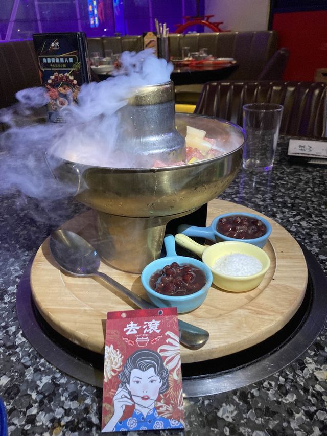 Go roll this now no need to think This funny atmosphere hotpot restaurant is located in Causeway Bay Deng Lung Street, the decoration is really quite funny, neon sign decoration, playful words of light signs and menu, highlighting the old Hong Kong sentiment, in this nostalgic environment to enjoy the food, gives people a sense of comfort. A variety of hot pot soups to choose from, ordered tomato pork bone potato soup, pork bone meat is very tender, tomato and corn, etc., the soup is sweet and sour and very refreshing. American hand-cut beef neck ridge is tender and full of beef flavour. Teochew fishballs are crispy and bouncy, while vegetarian dumplings are fresh. The vegetables are fresh, the bean sprouts are fresh and tender. The taste of Northeast cool wood ear cucumber is very fresh, the wood ear cucumber is crispy enough. The ghost creampied shrimp jelly stuffed fried ghost looks very cute, the shrimp jelly stuffed fried ghost tastes very fresh. Colorful fresh fruit cool noodle pot Dry ice creates a smoke effect, which is quite eye-catching. The pot contains watermelon, dragon fruit, mango and cool powder, served with red beans and flower milk, sweet and smooth enough to cool. There is also red date and pear tea, which is nourishing enough. @asmokingaffair.hk #hkfoodie #foodporn #hkfoodblog #foodies #foodiehk #instafood #hkfoodporn #foodblogger #Causeway Bay Food #Hong Kong Style #Hot Pot #camera food first #mobile food first #food blogger #Hong Kong food #Hong Kong store visit #Hong Kong travel guide #Hong Kong travel good places #Hong Kong food recommendations Go roll 27/F, Kim Chao Yang Centre, Phase 2 - Midtown, 1-29 Deng Lung Street, Causeway Bay #HongKongAttractions