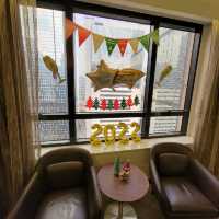 I used to work in Wanchai, often through the Six Nations, never knew what was inside! Seeing it rarely New Year's Day is not particularly expensive 👍👍👍, I bought a package of dim sum all-you-can-eat and breakfast on Trip.com, including tax for almost $ 1200, seriously affordable 😁 Check in is not many people do not have to queue, the staff is quite polite, overall feeling very good 😌😌😌 The room was given to me on the 19th floor, looking at the immigration building in front, I didn't expect to send the room decoration, perfect for photography! 😍 The most unexpected thing is that its window can see the New Year's Day fireworks, so close to see really wow! #playhotel
