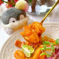 #Register for April hotel sleeper Today, I visited this Thai fusion restaurant full of flowers with my girly 🐧 friends 😍❤️ Once inside, 🐧🐧 you are attracted by the flower ornaments and butterfly ornaments 🥰 It feels super fantastic, like entering a fairy tale wonderland 🤩 Perfect for 🐧 friends who like to take pictures 🌸 First of all, I chose the Velvet Goldmine🥰 Pink and purple pasta, carefully decorated with all kinds of floral decorations as decorations, really like a work of art as beautiful😍❤️ can not miss eating🤭 Italian rice cream cream taste rich🥰 eat soft and chewy👍 taste quite authentic😋 The attached shrimp and mussels are large and fresh, super good🌟 Then listen to the staff recommendation, ordered a Padthai style gnocchetti sardi 👍 which adopts the characteristic jade chess powder 🤤 eat smoky tough and chewy 😘 secret Thai sauce sour and spicy, very appetizing, excellent 😚 Dessert ordered a gorgeous The Fallen Angel😇 Dessert served with a magnificent feather carrier, and also added a big crown as a decoration👸 It's really exaggerated and eye-catching🥴 Great for photography👍 Speaking of the dessert🤭 Hot biscuits are very large and soft, fluffy and full, the taste is full of egg aroma😘 The surface is covered with a lot of fresh strawberry sauce, plus light cream to eat together, full of sweetness😘 Finally, there is no shortage of order two special drinks😈 The drink shape is equally gorgeous and fantastic, the milkshakes are very fragrant and smooth, the milk taste is rich and not greasy, the sweetness is controlled just right👍 Not called missing the treasure🥴 🐥🐥🐥🐥🐥🐥🐥🐥🐥🐥 Restaurant name: Wanderlust Restaurant Address: Room 701, 7/F, Union Business Centre, 508 Shepherd Road, Causeway Bay #wanderlust #thai #fusion #dessert #photocafe #causeway Bayfood #causewaybayfood #hongkongfood #hkfood #hkfoodie #foodie #foodiehk #foodie #foodporn #foodphotography #camerafoodfirst #positiveenergypenguin #コウペンちゃん #koupenchan