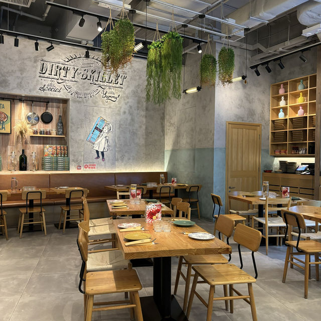 Come to this restaurant full of circus🎪 characteristics🍴 There are so many cute and childlike patterns everywhere And the seats are very spacious and can sit on the sofa 🛋️ There is also a seating that mimics a carousel🎠 in the center of the restaurant The environment design is very thoughtful and the staff are very friendly✨ ⁡ 鸡肉炸玉米饼 $78/2@ This is very appetizing as an appetizer snack🤤 And the presentation is beautiful and thoughtful to put on the shelf not so easy to fall apart Topped with tomato chunks/spicy chicken strips/avocado puree🥑 There is also a smooth Sour Cream + dish delicious and fresh 👍🏻 The bottom corn flakes🌽 are thick and crispy Loaded with so many moisture-containing ingredients, it didn't become soft💕 ⁡ Crab Miso Spaghetti $155 If you come to the store to eat must order this!! ️😏 The plate is large and full of ingredients. The chef is very heavy-handed. The crab roe 🦀 is more or less The spaghetti is dipped in the mint sauce, which is salty enough Plus a crab lid with lots of crab seeds and crab paste Free to add to spaghetti. You can enjoy the freshness of crab in every bite🤤 ⁡ Cuttlefish Sticks $68 The fried squid 🦑 sticks are real and bouncy enough. There are 4 sticks Seasoned just right with a salsa A little spicy and sweet goes very well with the squid flavor 🥰 ⁡ Souffle Omelette $118 For dessert we ordered the airy soufflé omelet There is a carousel 🎠 dessert tray turn turn turn 🥰 There are several birthday songs 🎂 can listen to birthday birthday must be very happy 😁 The taste is fluffy and tender, with rich egg yolk flavor 👍🏻🤩 The thick layer is fluffy and melts in your mouth without feeling too sweet Plus, fresh fruits such as strawberries🍓 + blueberries🫐 are more refreshing ⁡ Pineapple Hat $48 The pineapple specialty drink is very characteristic and full of fun😆 There is a flamego 3D plug in it, cute 😍 There's also a piece of caramelized pineapple 🍍 on top that's really edible😂 The overall pineapple flavor is prominent, the soda is full of bubbles 🫧 sweet and sour ⁡ Taiwanese Fruit Tea $65 The fruit tea is presented in a glass cup with lots of fruit and juicy enough The fruit pairing goes well together. It's sweet and sour and very appetizing🤤 In summer, it's cool enough to take a dip and quench your thirst 👍🏻💕 ⁡ ☆~*~★~*~☆~*~★~*~ ☆~*~★~*~☆ #HongKongFood #ShauKeiwanFood #EasternFood Where to find food 🥢: @dirtyskillethk 📍 Dirty Skillet (Shau Kei Wan) Shop G12, G/F, Hyatt Place, 393 Shau Kei Wan Road, Shau Kei Wan ⁡ #foodrecommendations #hongkongrestaurants #hongkonggoodplaces #hkfoodie #foodies #foodlife #themerestaurants #circusthemed #shaukeiwancafé #westernfood #snacks #foodguide #foodphotography