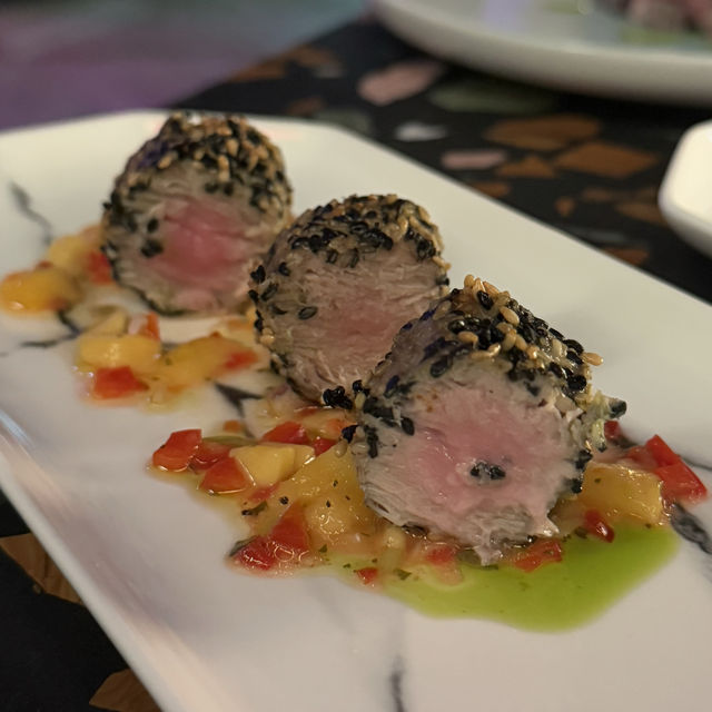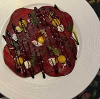 I must recommend this restaurant to everyone for birthdays, anniversaries, dates, and parties😌 First of all, the environment is already a plus. It’s comfortable and spacious, and it’s timeless~~ Spring Dinner Set $799 ✨7-year-old caviar bamboo charcoal cone A small portion and the bamboo charcoal cone is firmer. The 7-year-old caviar on the noodles is once in your mouth. Immediately spread to every corner of the tongue and mouth! ! (eyes sparkling✨ ✨Sesame Tuna Nuggets with Mango Salsa Eh~~ I wouldn’t know if I didn’t tell you that the noodles are tuna. This version is dryer and has a silky texture. Be sure to eat it with salsa. The mango flavor is not strong, but more oily and slightly sour. What is the chemical 🧪 effect? ​​The whole serving is more like salty snacks. It’s amazing🤣 ✨Seared foie gras with applesauce OMG! ! Their foie gras is also so strong! ! Is it because of the applesauce? The foie gras and goose fat are super fragrant, and paired with the slightly sour and sweet applesauce to relieve fatigue~~It also comes with multiple layers of bites Foie gras lovers must try it, it will make people moved🥹Happiness ✨Dragon fruit and fish salad This is so smart! ! Moreover, the ingredients are fresh, the dragon fruit is sweet and slightly chewy, and the beetroot is slightly fragrant and refreshing. The fish also has a light fish oil aroma. It is soft and has a rich texture. It tastes fresh enough but not choking. It is really tender and novel. There are no green vegetables in the entire portion, so friends who don’t like vegetables will definitely eat it all! ! ✨Crispy pork knuckles with Argentinian chimichurri sauce Their pork trotters are cut into pieces instead of slices. There are large and small sizes. Each piece has crispy and hard skin, QQ fat, and solid meat~ You can eat it once first without dipping it in the sauce. You can eat the original flavor of their pork knuckles and then dip it in the sauce. Moreover, you need to dip the last portion with sauce to reduce the greasiness of the fat without losing the aroma of the pork knuckle~~ ✨ Pan-fried sea turtle with roasted broccoli florets and lotus root crisps Please eat them all separately before adding each portion together~~ The fish is fried well but not overcooked, and the fish meat comes out piece by piece. It is soft while still retaining a slight bite. Lotus root crisps are really enough to eat alone, and other potato dishes can be eaten together with sea turtle~ Mix a few of the sour bottom tomato sauce to make it more appetizing~ ✨Shisha $180 (Liquor + Chocolate + Milk + Oolong +Mint Lv.5) Haha, I didn’t tell MENU either. I told Packer directly that I love sweetness and creamy. (I love their Shisha very much. Of course, in addition to being cost-effective, it also smokes very well!! (You can already Bulubulu and smoke a mouthful without using too much force🥰 Packer is also very careful. He is afraid that our mouth will feel sticky, so it will add more oolongs and reduce the greasiness. Moreover, you can definitely taste the chocolate🍫 flavor of the noodles, not to mention the concentration~~ Next time you come to SHISHA, Hong Kong Island, come and try this restaurant~~ ✨Between Two Lovely Hearts $148 Friends who love to try new things but are not intolerant of the taste of alcohol/sweetness, this is the drink for you. You can smell the aroma of chrysanthemums as soon as you put it in your mouth. It is fresh and easy to drink (the other half even said it tastes like chrysanthemum tea) It’s so funny that you really can’t do this. He’s really creative and understands girls very well. He can drink it easily~ ✨Pattaya's Rose $158 This is so romantic✋The girl’s heart melts first🫠 There is still a burst of lemongrass flavor when burning, which is very interesting. But when drinking, it is full of sweet and rose feeling. It’s not too alcoholic, girls must order it, and boyfriends must order it for girls too! ! Definitely a plus! ! (Also, be sure to remember to pick up your 🫴 mobile phone 📱 immediately and take a good picture In addition to the environment, their food is delicious SHISHA, cost-effective, bartending and checking in And you can also order songs after 9 or 10 o'clock and sing outside. It's so fun~~ Even if I didn’t want to go up and sing, I’m still very happy just listening to everyone singing and having fun~ VIBE~~ If you want to go on a date next time, come here. After dinner, if you want to drink some wine, you can also CHILL CHILL. Come and feel it. 🌟Arcadia 📍30/F, Midtown, Phase 2, Golden Chaoyang Center, 1-29 Tang Lung Street, Causeway Bay (Exit B of Causeway Bay MTR Station, about 4 minutes’ walk) 🕰️Monday to Thursday, Sunday and public holidays 15:00 - 02:30 Friday to Saturday, eve of public holidays 15:00 - 04:00 🧾Visa, Master, AlipayHK, Alipay, Cash, Octopus, AE, UnionPay, Apple Pay, Google Pay, WeChat Pay #Hong Kong Food #Causeway Bay Food Recommendation #A good place for couples to date #bar #shisha