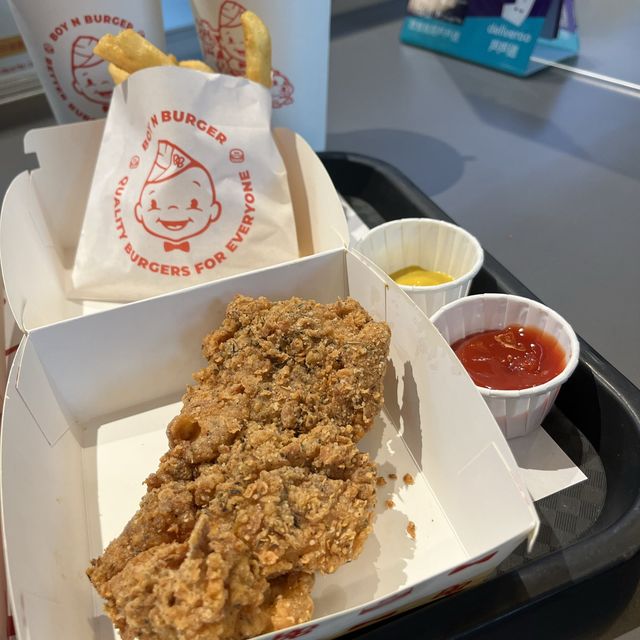 The restaurant is a nostalgic American burger shop, the shop also has a sperm-sucking big sign, it turns out to be their mascot Bobby, very photo-able 🤣. The food is strictly controlled, the menu states that it uses 100% pure British beef matured in natural sea salt caves and antibiotic-free. Opened not long ago, has been introduced by many people, eaten said cheap and delicious, as it was well-deserved, good to eat to want to selfish collection 😍, more and more people introduced, not only foodie, but also YouTubers, afraid of then have to queue 🥺🥺, take advantage of not many people must go quickly to eat again 😢!! ️                  —— 💕 Big Bobby $78 👅 Taste Index: 10/10!! ️ This size looks like a giant at first glance. It's huge, basically one bite will not eat the whole bun 🤣 But it's many times better than the Big Mac we originally knew❗️ There is no comparison, completely 2 Lv come😂 Sesame burger left three layers of beef burger steak 🥺😍 2 pieces of cheese and lettuce etc Made to order, the hot beef burger is bursting with juice🤩 The beef burger is thicker, the meat is fried at all, not dry, not soft and still has beef flavor☺️ Serve with other ingredients, tomatoes, onions, homemade pickled cucumbers Perfectly neutralizes the greasiness 🥺🥰 Plus homemade secret sauce, very tasty and juicy❗️ Dare to say better than the two street food 😍❤️!! ️                  —— 💕 The Maxica $38 👅 Taste Index: 6.5/10 The chipotle burger has a piece of beef burger steak, Cheese, lettuce, tomatoes, onions, homemade pickled cracked cucumbers The highlight is the Mexican chili 🌶️ The spicy is very tasty, a spiciness that is acceptable to eat a little spicy Add ketchup and mustard, the taste is more fragrant and not dry 👍🏻                  —— 💕 Seasoned Crispy Fries $15 👅 Taste Index: 8/10 This comes with the package Main course +$25 includes fries/potatoes/salad and drink. Drinks can also be refilled~ I then +$5 upgrade package to thick cut fries Fried crispy 🥰 but a little soft The seasoning is just right, a bit not enough, next time will add more french fries 🍟🤣                  —— 💕 Chicken Thigh $28 👅 Taste Index: 10/10!! ️ Must eat must eat must eat‼ ️I have to say it three times😍 The first bite I "wow" left 😨, Made to order, hot and crispy, The meat is even loosened when you bite into it. It's better to say it's melted than it's bitten 😂, I have never tasted fried chicken like this❗️ The meat is extremely tender and tender, very tender!! ️ The gravy is so juicy😍❤️ And the seasoning is just right, nothing to fault❗️ It's crazy to eat🥰 ✨Overall, it is cheap to crazy, good to eat crazy🥰, every employee service attitude is very good, very nice, I believe everyone will come back to eat after eating.                  —— Environment: 8/10 Service: 9/10 Overall taste: 9.5/10 Return rate: 10/10                  —— ❣️Opening Hours: Monday to Sunday: 8:00-22:00                  —— 📍Boy n Burger (Wan Chai) Shop 3, G/F, 208 Johnston, 206-212 Johnston Road, Wan Chai                  —— #boynburge #wanchaifood #hamburger #food review #hongkongfood #sharefood #foodfollower #hkfoodstagram #hkfoodphotography #hongkongfood #hongkongfoodie #hkig #hkfoodie #hkfood #igfoodhk #hkfoodblog #hkfoodblogger #follower #follow