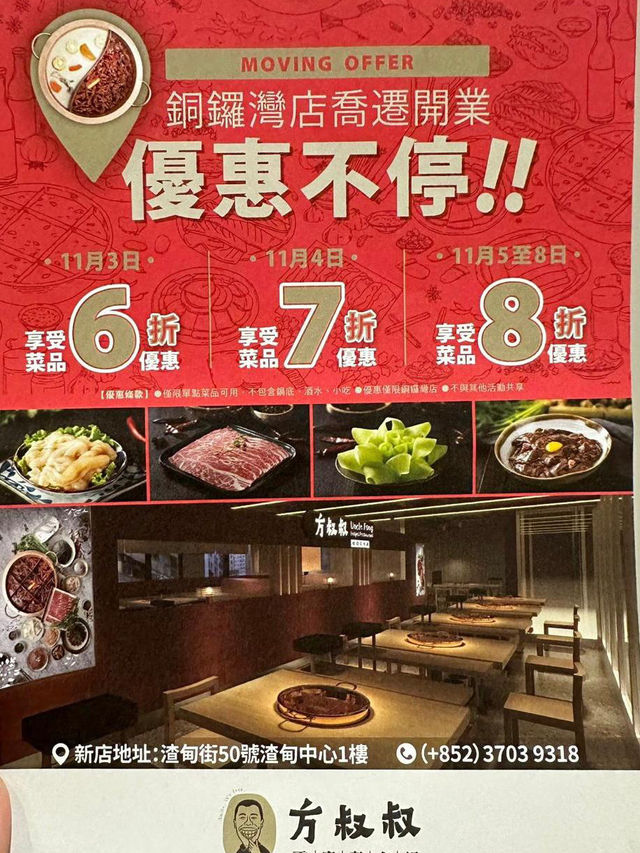 Uncle Fang Chongqing Old Hotpot Causeway Bay new store big discount