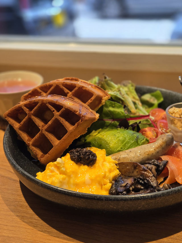Weekend lunch with friends, a cafe seems to be the first choice, and my friend suggested having pancakes. I had no objections. I still remember seven or eight years ago, pancake specialty stores were everywhere in Hong Kong. I visited quite a few, but as my enthusiasm waned, I rarely ate them anymore. This time, I tried Tera for the first time. Although it is a Souffle Pancake specialty store, they also offer pasta and all-day breakfast. Now that I'm older, the days of having sweets as a main meal are over. I need some savory food, so we started with an all-day breakfast to share. Don't expect a traditional English all-day breakfast here. There's no black pudding or even hash browns. However, their black truffle scrambled eggs (of course, it's just truffle sauce) are tender and smooth, the mushrooms are fragrant, there's half an avocado, and the waffle is crispy on the outside and soft on the inside. Nothing much to complain about. We also tried the shell cake, which was the popular pistachio flavor. The texture was good, and the pistachio flavor was prominent, better than expected. The star of the show was still the jiggly pancakes. We chose the golden Nutella flavor. The three-layer pancakes were fluffy and had the desired wobble effect. The airy texture paired with chocolate sauce was hard to go wrong. My friend had tea, and I opted for a yogurt drink. I originally wanted to end with an Affogato, but our capacity was too weak, so maybe next time. Restaurant Information: Tera Shop 4, G/F, Po Fat Building, 273-285 Temple Street, Jordan