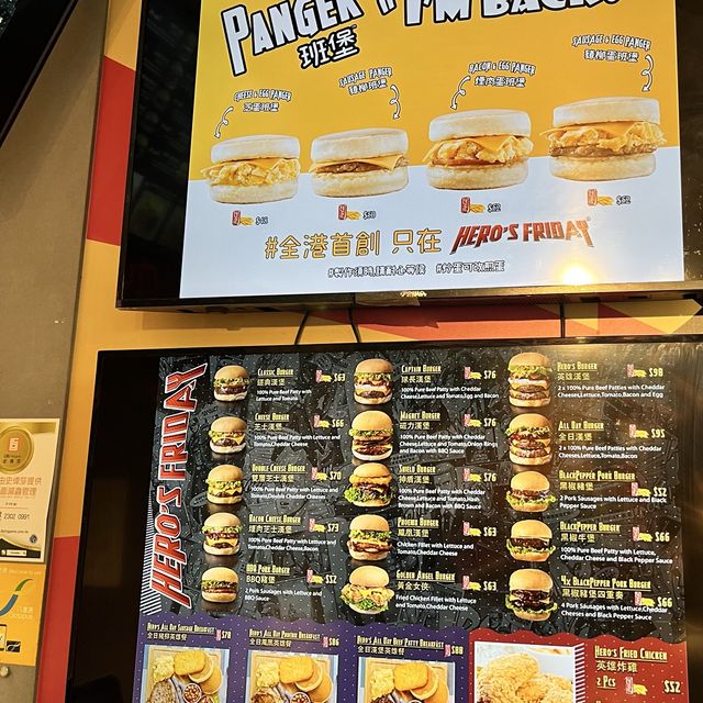 From it just opened, with the first Hong Kong ban burger when it became popular and have been eating until now 🥰 Watching it open more and more branches, more and more new flavors, even black pepper beef burger, all day breakfast are available 😆, the same is so high quality so good ❗️                    —— 💕 Shield Burger $76 💕Pork fillet and egg banger $52 ✨All burgers include French fries 🍟 + soda 🥤 ✨Changeable (Onion Rings/Fries +$8) (Sweet Fries/Fries +$10)                    —— 💕 Shield Burger + Onion Rings $84 👅 Taste Index: 9.5/10 This burger portion is not a joke, huge 🍔🤣 very filling❗️ The ingredients are 100% pure beef, semi-melted cheese🧀, tomatoes🍅, lettuce🥬, bacon and potato pancakes, so big that it is difficult for men to take a bite😂 The beef is already bursting with juice💦 The meat is tender🤤 very juicy super heavy beef flavor❤️ Onion rings fried a little longer slightly slightly bitter, but the victory is enough crispy, onion sweet, are good☺️                    —— 💕Pork fillet egg bun + fried chicken $62 👅 Taste Index: 8/10 Once I opened the banburger, it was hot🤤 The cheese melted so much that the paper was wet😳 The egg is a super smooth egg, the key is that the pancake texture is fluffy and slightly sweet🥞 The fried chicken is crispy and fluffy, with enough salt flavour, it's not greasy, great 🥰❗️                    —— Environment: 8.5/10 Service: 9/10 Overall taste: 9/10 Return rate: 9/10                    —— ❣️Opening Hours: Monday to Sunday 12:00-22:00                    —— 📍 Hero's Friday (Whampoa New Estate) (Hung Hom) Shop 4M, G/F, Yuen Fu House, Whampoa New Estate, 99 Shipyard Street, Hung Hom                    —— #herosfriday #beyourownhero #Lai Chi Kok Food #Central Food #Whampoa Food #Whampoa #Sham Shui Po Food #Sham Shui Po #panger #burger #Bamburg #hkfoodstagram #foodie #hongkongfoodie #hkig #hkfoodie #hkfood #igfoodhk #hkfoodblog #hkeats #openricehk #ufoodhk #hkmarketing #hkfoodlover #foodforlike #f4f #852food #follower #follow