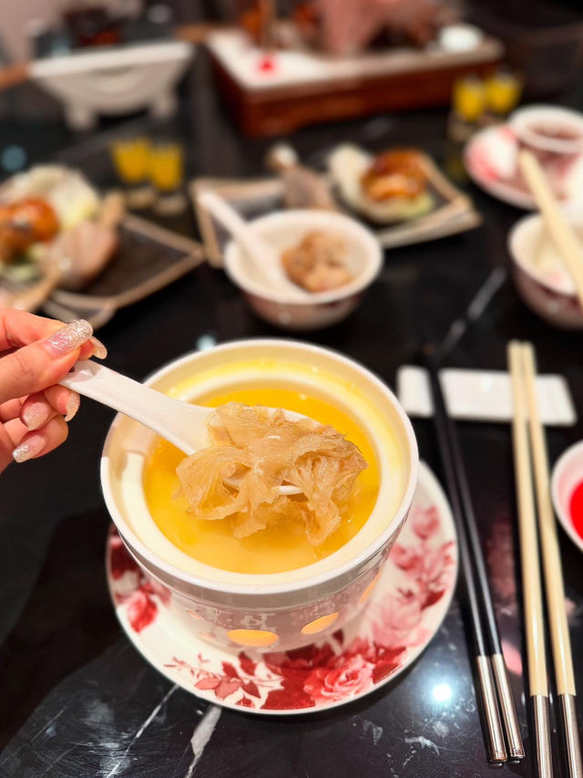 . . Sometimes I crave Chinese food👅! Usually, I recommend fine dining, omakase, teppanyaki, sukiyaki—tired of those❓ This time, I want to introduce a seaview Chinese restaurant in Tsim Sha Tsui🌊🥢, which delicately and innovatively reinterprets hometown dishes mainly based on Cantonese cuisine with Northern Chinese influences. They offer banquet dishes like abalone, sea cucumber, shark’s fin, and fish maw, as well as homestyle small dishes. They’ve recently launched many great value promotions😍! Perfect for dining and chatting with family while enjoying the Ferris wheel view❤️. Recently launched great deal 【Rich Soup Shark’s Fin Set】 $288 p.p. Includes signature dishes like rich chicken pot with large shark’s fin & claypot rice, super tempting! 🔸3 appetizers: Crispy tofu (tender and smooth), cucumber salad (refreshingly crisp), ginger-sand pork knuckles (springy and tasty) 🔸Rich Soup Large Shark’s Fin (Braised Shark’s Fin, super rich and great value!) 🔸Paper-wrapped pork ribs with baked oysters in wine (meaty ribs, plump and delicious baked oysters) 🔸Fresh seaweed with vegetable shoots (seaweed adds a lot of freshness and sweetness, very tasty) 🔸Crispy eel rice (whole claypot rice cooked from raw rice, with crispy rice crust + crispy eel, perfect) 🔸Traditional sesame rolls (a must-try🖤 super rich sesame aroma, love it!) Also noticed every table ordering 【Signature Braised Pigeon】 currently (Buy One Get One Free) $68, super value! I ordered one too~ (Salt-grilled royal pigeon, tender juicy meat with crispy skin). Plus: passion fruit juice $8 per cup😍 very tasty! Next time I want to eat Chinese food with family, I have another great choice! . . ×××[Chung’s Kitchen]××× ©Shop 802, 8/F, 1 Peking Road, Tsim Sha Tsui . . #pekingroad #1pekingroad #RichSoupSharksFin #ChineseFoodChoice #enjoylife♥️ blogger #🐽