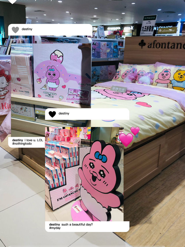 Sleeping Bunny 📍Address: Kornhill Jusco Recently, there's a dedicated section for the super popular cartoon "Opanchu Usagi," filled with all kinds of adorable stationery and accessories, and even irresistibly cute bed sheets! Whether you're a kid 🧒 or an adult 👭, you'll be charmed by its round and cuddly design, making you want to take everything home. The area also features multiple photo spots with colorful decorations and giant plushies, attracting many visitors to take memorable pictures. Additionally, there are newspapers and magazines themed around Opanchu Usagi, which fans definitely shouldn't miss! Come and visit, and bring this healing bunny home! 🥳🥳🥳