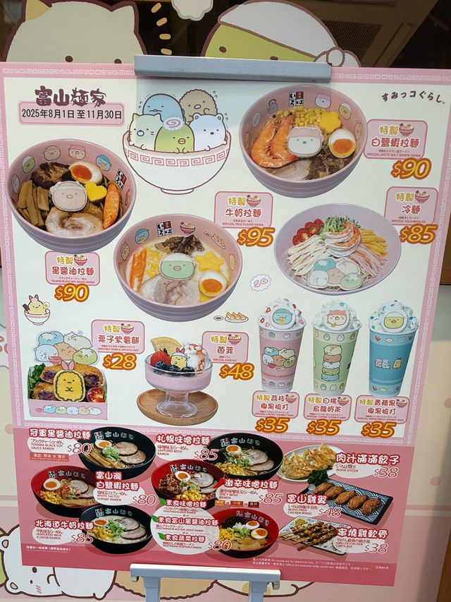 Recently discovered that Toyama Ramen has launched a limited-time Corner Creature theme 😆 As a dedicated fan of Corner Creatures, I immediately went to check it out 🤗 Upon entering, I was surrounded by adorable Corner Creature decorations, instantly feeling healed 😍 The store offers a variety of cute, self-made Corner Creature merchandise for purchase. Buying any merchandise comes with a free Corner Creature keychain—a small joy to brighten your day 😚 If you follow, like, and share Toyama Ramen's Instagram, you'll also receive an A4 folder, perfect for organizing 🌟 As for the food, the highlight of this themed menu is undoubtedly the Corner Creature cold noodles ❤️ The presentation is exquisite, with adorable Corner Creature-shaped toppings on the noodles, making every bite a delightful surprise 🥰 The cold noodle sauce is refreshing, perfectly balanced between salty and sweet—ideal for summer 👍 The chestnut and purple sweet potato cake is equally impressive. The purple sweet potato is smooth, the chestnut is sweet, and paired with the cute fried shrimp egg topping, it's perfect for Instagram-worthy photos 😚 For drinks, the special lychee soda is light and refreshing, with a subtle lychee aroma in every sip, pairing wonderfully with fried dishes 👍 The special parfait is rich in layers, featuring fresh fruits, ice cream, and small cakes. Not only is it delicious, but the fried shrimp garnish adds a charming touch 😍 Just looking at it fills you with joy 🥰 🐧❣️ Remember to follow, like, and share their Instagram @ramenirohahk to get the beautiful A4 folder ❣️ 🐥🐥🐥🐥🐥🐥🐥🐥🐥🐥 Restaurant Name: Toyama Ramen Restaurant Address: G/F, 7 Haven Street, Causeway Bay