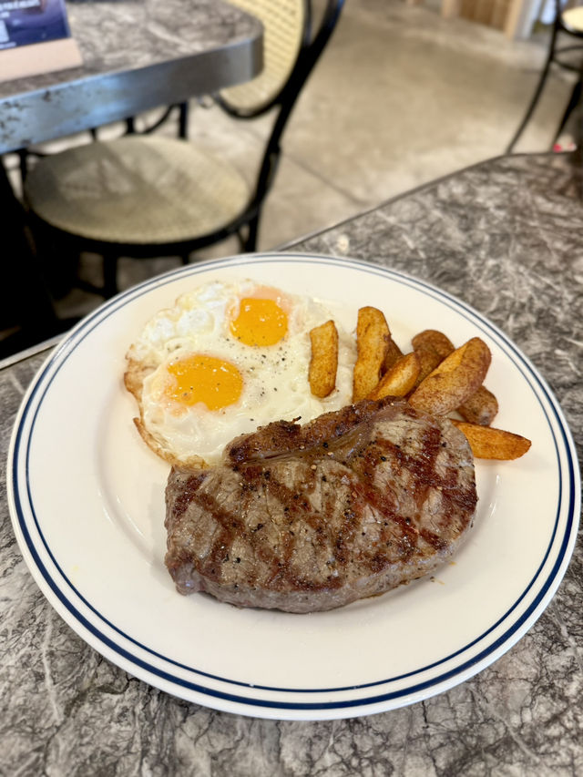 Last week, I celebrated my birthday with friends 🎂 and chose a restaurant for brunch. Overall, the experience was pretty good! We ordered several dishes to share, and every single one was very satisfying. First of all, I have to praise the Steak and Eggs! The steak was cooked just right, tender with rich juices. When cut open, you could see the pink meat inside, perfect 👍🏻 Paired with a golden fried sunny-side-up egg, once you cut it open, the yolk flows out, mixing perfectly with the steak 😋 As for the French Breakfast, the portion was generous, including croissants, scrambled eggs, ham, sausages, and more. Everything was cooked very well, especially the croissant, crispy on the outside and soft inside, with a rich buttery flavor! For drinks, we ordered Cappuccinos, which had a strong coffee flavor and creamy foam. Lastly, of course, the star of the show was the Skillet Pancake! The restaurant thoughtfully wrote birthday messages on the pancake for us, which was really thoughtful! The pancake was fluffy and delicious, served with maple syrup and fresh fruit, making the flavor even richer and adding a sweet atmosphere to the whole birthday brunch. In summary, whether it’s the food quality, ambiance, or service attitude, this restaurant performed excellently and is definitely a great place to celebrate a birthday! 📍A POELE Shop G514, G/F, Hing On Court, 5 Tai Yau Road, Taikoo Delicious Food