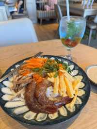 #Register for August Hotel Tester 2025 This is a fresh and relaxed cafe. ᪥Midnight Smoked Ox Tongue Omelette Rice The smoked ox tongue is incredibly tender and smoky. After serving, the waiter cuts the omelette and pours their special sauce. My favorite part is the seasoned rice inside; it feels like a Japanese rice ball. ᪥Style Soy Sauce Prawn and Sesame Cold Noodles A rare cold main dish at the summer festival, the sesame cold udon, is similar to the dish we enjoy during Chinese New Year. Sesame sauce is mixed with shredded radish, egg, cucumber, and pork, and eaten together. ᪥Cha Summer Festival Yatai Snacks Snacks include Japanese-style takoyaki, which is fresh and spicy, grilled corn, cheese-salted chicken, and plum tomato, which is a sweet and sour appetizer. Summer Night Fireworks White Peach Shaved Ice 🍑 This white peach shaved ice is full of summer vibes, and its pink color is quite appealing. White peaches are in season now, so they're incredibly fresh and sweet, and the shaved ice is refreshing and delicious. Fireworks Story White Peach Soda 🍑 The white clay soda isn't too sweet, and it's topped with two white peach slices and cream. Stirring the cream adds a layer of depth to the drink. 📍Restaurant: Chicha Chobo (Causeway Bay) Address: Shop 8, 4/F, World Trade Centre, 280 Gloucester Road, Causeway Bay