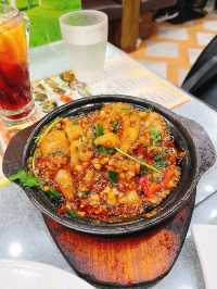 My friend flew to the UK🇬🇧 and came back from the airport at 10 or 11 pm. Fortunately, my boyfriend knew that this tea restaurant was open until the early morning. Since we didn't have dinner this time, we ordered a small dish set (2 people) for $156 💁🏻‍♀️, which includes two dishes + two bowls of rice + two bowls of soup 1) Slightly spicy fatty beef with shrimp🦐 I always want to eat spicy food on rainy days. The soup is made from the soup of drunken fish. There are quite a lot of beef slices and four shrimps. They are topped with seasoning and peppercorns. It's not as spicy as I imagined👍🏻 It's slightly sour and spicy and very appetizing. But the shrimp may not be fresh enough and is a little rotten. 2) Peeled fish-flavored eggplant casserole🍆 The eggplants I usually eat at food stalls are all with skin. This is the first time I've eaten skinless ones🍆. They are very fragrant and tasty. After peeling, the hard feeling is also removed. A full pot is very good to eat with rice The two of us finished the meal before we knew it. However, this dish is quite oily, so people with sensitive stomachs should be careful ❤️ Longcheng Ice House 🧡Address - Shop C, G/F, Lee Kee Building, 55 Ngau Tau Kok Road, Ngau Tau Kok (left side of Amoy Gardens Shopping Centre) 💛Transportation - Exit B of Kowloon Bay Station 💚Features - Very Hong Kong style, very local side dishes with a lot of heat 💙Price per person - $78 💜Rating - 4 / 5 #Local Tour #First Choice for Late Night Snacks #Kowloon Bay Food #Recommended Tea Restaurant