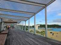 An artificial beach with clear water and fine sand🏖️