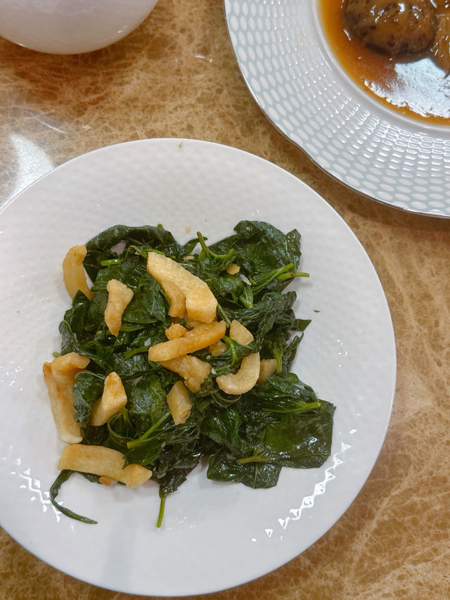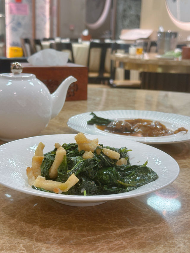 "Zheng Chao Lou" is helmed by a national-level Chaozhou cuisine master 👨🏻🍳, offering authentic Chaozhou flavors 😬. Braised Abalone with Goose Webs 🥢: The abalone is savory, tender, and bouncy 😗, while the goose webs are large, flavorful, and stewed to a soft texture 🪿😋. Served with thick mushrooms and vegetable hearts 🍄🟫🥦. Chaozhou Fried Rice 🍚: Each grain of rice is distinct 🔥, with generous amounts of shrimp and Chinese sausage 🦐🍖, making it incredibly tasty 👍🏻. Sweet Potato Leaves Stir-Fried with Lard 🥬: Tender sweet potato leaves stir-fried with crispy lard bits 🐖, giving it a uniquely fragrant flavor 😛. Dried Scallop and Seafood Congee (Single Serving) 🥣: Features a variety of fresh seafood like dried fish 🐟, squid 🦑, dried scallops 🐚, and oysters 🦪. The squid is chewy, and the oysters are plump and juicy 🤤. The congee base is light and mildly savory 😌, enhanced with a touch of pepper 🧂. Green Bean Dessert with Clear Heart 💚: Peeled green beans are distinct and sweet, with a pleasant bite ☺️. The clear heart balls are chewy and smooth 😆. Tea Set (for 2) 🫖 Zheng Chao Lou Address: 📍 Shop B, G/F, Phase 1, China Taiping Tower, 8 Sun Ning Street, Causeway Bay