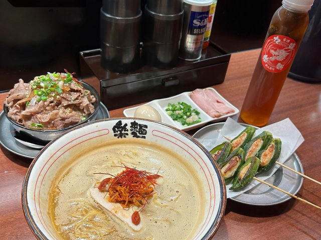 I've had this place before at Metroplaza in Kwai Fong and I think it's quite innovative to try Hong Kong-style ramen with a Japanese twist. 🍜 Popular dishes include Huadiao Drunken Chicken, Pepper Pork Tripe, and Sze Kou Sze Noodles, all signature ramen dishes that incorporate local elements. 👂🏻 I heard there are plans to expand into Japan, so I absolutely support bringing Hong Kong flavors abroad. 🫡 The limited-edition ✨ginseng chicken soup has a rich and sweet ginseng base, reminiscent of your mother's traditional broth. The Japanese ramen and ginseng soup complement each other surprisingly well. 👍🏻 Surprisingly, the Hong Kong-style ramen is complemented by an equally impressive runny egg, cooked to perfection and perfectly complementing the ramen. If you're afraid of overeating and getting a sore throat from ginseng soup, add some cold-brewed chrysanthemum oolong tea to neutralize the heat. 🤭 Then you can eat as much as you want without worrying about it~ Karaage Japanese okra stuffed with shrimp paste is deep-fried. The okra is processed to remove the slime before being stuffed with shrimp paste. It's fried first, then pan-fried, and sprinkled with a light sprinkle of salt and pepper for flavor. This is great for those who are afraid of slime. While I know okra is rich in dietary fiber, it's difficult to swallow. This cooking method perfectly complements its strengths and mitigates its weaknesses, making it a pleasant option for me, someone who usually hesitates to eat it. Have you ever noticed when traveling to Japan that many Japanese people order rice to go with the remaining broth after eating ramen at a ramen restaurant? There's a term for this: "ramen rice." The problem is that Japanese ramen soup bases typically take over ten hours to simmer, making it a shame to leave the soup after finishing the ramen. I personally love the ginseng chicken soup and wanted to try it, but the grilled Angus Wagyu beef rice at Lok Noodles is also quite good 👌🏻 The beef in the sukiyaki sauce is rich and not too dry, and I couldn't bear to use the rice to savor the ginseng soup. 🫢 I couldn't resist ordering a portion to bring home for my family. 🤟🏻 The pepper pork belly broth, based on the ginseng broth, is served with pepper pork belly instead of the traditional Japanese char siu. It's quite innovative and warms me up in this damp, cold weather. Lok Noodles (Tseung Kwan O) Address: Shop 185, 1/F, East Point City, 8 Chung Wah Road, Hang Hau, Tseung Kwan O