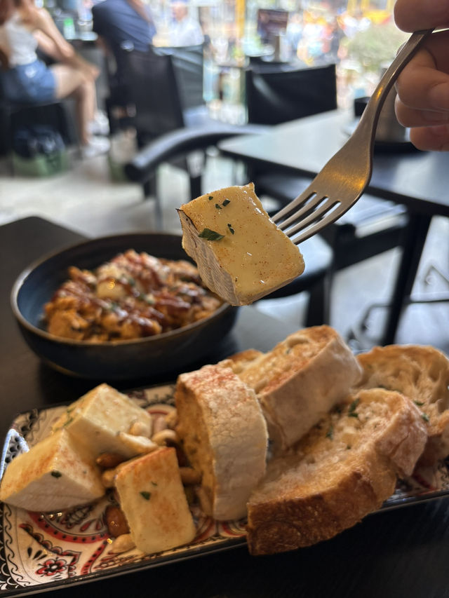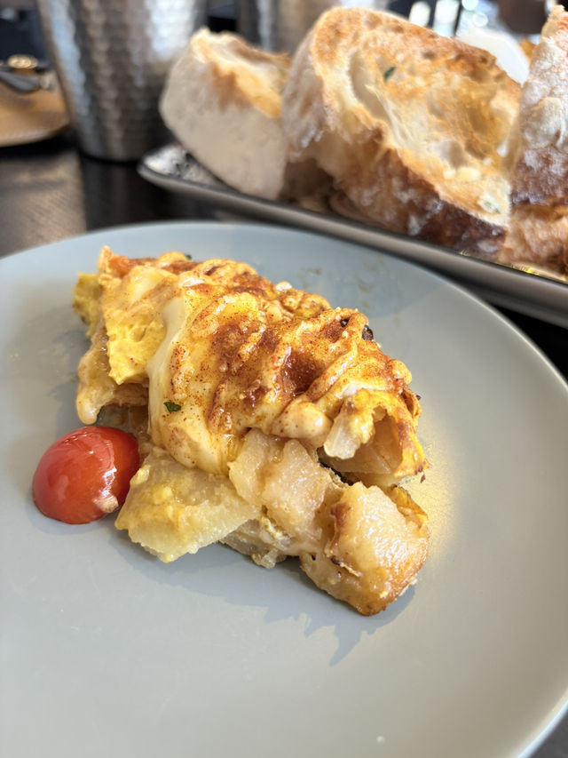 #Register for September Hotel Sleep Tester 2025 ❣️MOBIN 🔍Shop 2, G/F, Yadon Hotel, 380 Nathan Road, Jordan -----X. The restaurant environment is quite comfortable, around the corner of the Eaton Hotel, large glass windows, quite good lighting. In the afternoon the main Cafe, at night it is like a small bar. I joined their wine tasting event before, this time I came here for a weekend lunch, then I went shopping in Tsim Sha Tsui. 15 kinds of spices minced meat fried rice One of their signatures, you can choose your own spiciness and toppings. Tried the ink-style roast chicken version. The fried rice has a moist texture, with a variety of spices. It tastes spicy and sweet, quite layered. Spanish Grilled Onion Potato Egg Tart The egg cake is thick and firm, cut into a slightly soft heart, the potato flavor is very strong, with a slight egg flavor, as a super potato control, personally very like. In fact, it can be appended to other fillings, however I think the simplest flavors have the strongest potato and egg flavors. Toasted honey burrito cheese with sourdough bread Grilled cheese🧀 with slightly melted, slightly browned surface, plus honey, sweet and salty, then served with sourdough bread, the taste is quite balanced, not too greasy, with wine should be great. #swallowcafe #swallowjordan