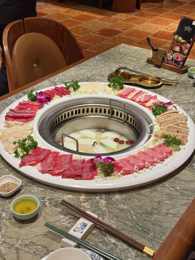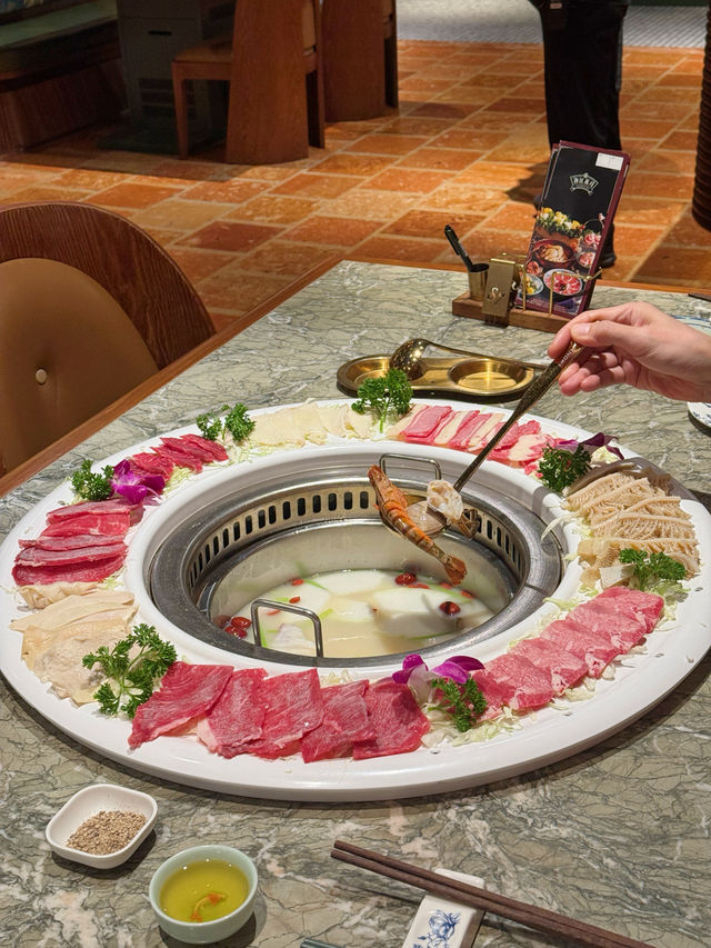 Recently, I visited this amazing hotpot restaurant with my friends. As soon as we entered, we were captivated by the nostalgic 1950s Hong Kong decor, featuring carved window frames, crystal chandeliers, and vintage sewing machine displays. The atmosphere was perfect for taking photos and sharing on social media 📸. This time, we ordered... Seafood Hotpot with Premium Beef Hula Hoop The presentation was truly stunning 🤩. Different cuts of beef were arranged in a circle, resembling a hula hoop. The plating was absolutely beautiful! The beef brisket was tender and chewy, the beef tongue was soft and delicate, and the beef heart had a delightful crunch, offering a rich variety of textures. It was more than enough for two people, leaving us completely satisfied! For the broth, we chose the seafood base, which was simmered with various fresh seafood. It included whole abalone with a bouncy texture, large prawns, succulent crabs, and fresh slices of grouper. The ingredients were incredibly fresh, and everything tasted wonderfully sweet and flavorful 😋. The seafood portions were generous and substantial. 📍Heung Kong Fa Yuet 2/F, Pak Shing Building, 31-37 Jordan Road, Jordan, Hong Kong