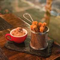 The environment of the restaurant is like being in a foreign restaurant, the quality of the food is good, even my father who first tasted Spanish cuisine said he was satisfied😆 🇪🇸Crispy Fried Herring Balls with Honey Foam ($98) Similar to fried horseradish potato balls, crispy on the outside and fluffy on the inside, sweet and sweet with honey foam😋 🇪🇸 Garlic Prawns in Virgin Olive Oil with Crispy Toast ($148) The prawns are big and crispy and not moldy. My favorite sauce has a strong garlic and shrimp flavour. It's crispy and delicious when eaten with toast😋 🇪🇸Spanish Braised Beef Belly and Hazelnut Sauce ($148) Usually see beef belly appear in Teochew noodle shop, this way of eating impression is the first taste 😆 beef belly stewed very soft and seasoned, with chickpea spicy sausage sauce taste very rich 😋 🇪🇸 Traditional baked toast, Spanish organic cherry tomatoes, pesto and extra virgin olive oil ($58) The staff improvised garlic and tomatoes on the toast, then drizzled with olive oil and served; the toast was crispy and garlic and tomato flavor, and also had a little raw garlic spicy, good😌 🇪🇸Specialty Spanish Fried Egg “Broken Egg” with Crispy Fries and Chilli Sausage ($108) The potato chips are crispy and not greasy, and are quite delicious to eat with half-boiled eggs and spicy sausage 😌 🇪🇸Slow Cooked Spanish Suckling Pig with Vanilla Baked Potatoes ($338/serving) The suckling pig has been pre-cut into 4 pieces, crispy skin and tender meat, served with sauce or coarse salt, the taste is more rich 😋 🇪🇸Signature Spanish Black Pork Seafood Rice ($238) Paella is cooked with mussels, mussels, prawns and Iberian black hair pig. The seafood rice is not only seasoned but also full of freshness. Squeeze a little lemon juice before eating to make it even more delicious😋 🇪🇸Traditional Spanish Churro Crisps with Vanilla Ice Cream & Chocolate Mousse ($72) Churro is an indispensable Spanish dessert, crispy on the outside and soft on the inside, served with ice cream cold and hot, full of taste 💯 🇪🇸Sangria (Red Wine / White Wine) By Jar ($278) You can choose red wine/white wine, it has a fruity aroma, the wine taste is not very strong, even if you don't usually drink wine, it's suitable for drinking😌 📍Rustico Shop G01, G/F, D2 PLACE Phase 1, 9 Cheung Yi Street, Lai Chi Kok #hkkol #kolhk #hkfoodie #hkfoodies #foodiehk #foodblog #hkfoodblog #hkfoodblogger #foodie #hkinfluencer #influencerhk #bloggerhk #hkblogger #sangria #traditional Spanish Churro Fried Crisps with Vanilla Ice Cream and Chocolate Mousse #Signature Spanish Black Potato Pork Seafood Rice with Vanilla #Slow Cooked Spanish Breast Pork Seafood Rice Egg with crispy potato chips and spicy sausage #traditional grilled toast Spanish organic small tomatoes, pesto and extra virgin olive oil #Spanish braised beef belly chickpea spicy sausage sauce #virgin olive oil dipped garlic shrimp with crispy toast #Crispy anchovy balls with honey foam #rustico #rusticod2place #tapas #spanishtapas #d2place #spanishcuisine #spanishfoodhk #Spanish food