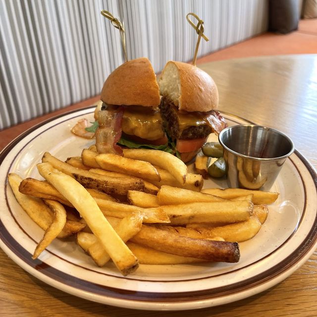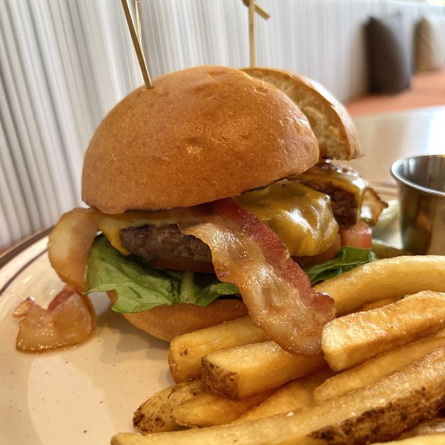 @msquarehongkong Weekend to Sai Kung for a walk and relax 😎 I was thinking of going to Tai Pai Dang to eat seafood, but after going to the church in WM Hotel ⛪️ to take pictures 📸️, I found a new Western restaurant "M Square" so I went in for lunch🥳 The restaurant is decorated with wooden gardens, which gives it a holiday feel. The environment is spacious and bright, the ceiling is high, and the space is full. The sunlight shining through the glass is very comfortable!😚 I love the atmosphere of the restaurant. In addition to the live broadcast of the Premier League, there are also billiards 🎱, football machines ⚽️, pinball tables and golf ⛳️. 🍔Maple Bacon Cheeseburger $155 The Burger is packed with ingredients, including Angus beef, maple bacon, and cheese. Angus beef burger steak, thick enough to bite the meat and quite Juicy, paired with maple leaf syrup fried bacon, crispy and sweet. Adding the salty flavor of cheese, the whole burger is very layered! Side dishes can choose french fries or salad, I chose french fries, quite crispy and good 😋 🥯🥑Salmon Avocado Smash Sourdough $145 This sourdough bread has all my favorite ingredients, smoked salmon, poached eggs, avocado and yogurt sauce. Sourdough bread is additive-free, yeast-free and artificial additives, and tastes sour and smoky. The smoked salmon is super big, the sourdough bread is spread with avocado puree, and the smoked salmon and poached eggs are healthy and delicious🤤 🍌🍫🥤Choco Banana Milkshake $78 The weather is so hot to drink a cup of milkshake is very cool, with a rich chocolate flavor, chocolate and banana match, drink very fragrant, every bite has grains of chocolate chips and nuts, drink smooth and chewy 😍 🍓🥤Strawberry Milkshake $58 The strawberry looks beautiful🤩 The strawberry is moderately sweet, you can feel the rich fruity aroma of the strawberry, the smoothie texture is thick, the entrance is smooth like cream, it tastes fresh and refreshing😉 🥞Banoffee Crème Brulee Pancake $135 First time eating Pancake on a bowl🤭 Soufflé Pancake The egg flavor is very fragrant, and although it is a thick pancake, it is full of air, so it tastes very fluffy. The tofu sauce and vanilla cheese sauce were both delicious and not too sweet. Served with crispy caramel, fresh banana 🍌 and strawberry 🍓 rich taste, full of happiness 🥰 💕Eat the pancake and go play billiards, football machine, pinball and golf. The attentive service of the staff here is worthy of praise 👍🏻 Next time I will definitely bring my family with me again! 📍M Square (Sai ​​Kung) Shop A1, G/F, WM Hotel, 28 Hui Min Road, Sai Kung #hkfoodie #hkfoodblogger #instafood #hkblogger #msquare #AmericanWestern Food #wmhotel #staycation #msquare #Sai Kung #Sai Kung #burger #Western Food Recommendation #hkfoodpic #foodstagram #foodiegram #foodporn #foodpic #chill #foodshare #saikung #saikungfood #pancake #foodielife #reviewsharing #cameraeatfirst #photolocation #msquarehk
