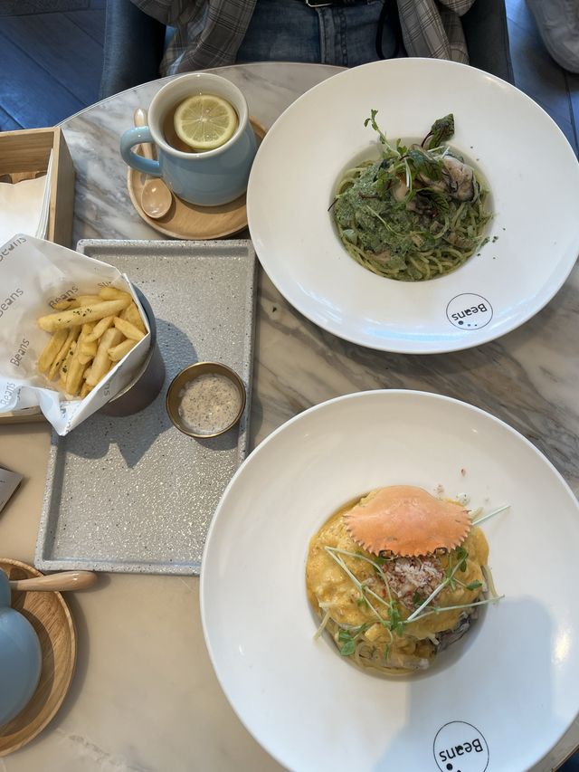 A few minutes walk from the new city crossing to the IKEA side😇 You can take the lift directly up 🛗 Weekdays lunch time to eat crowds are quite a lot to wait for a while⏰ Lunch time 11-18 pm 🕧 The restaurant also offers outdoor areas This time I went to eat his spaghetti again😗 If you come with friends, I suggest ordering another snack😌 Especially the fries recommend the black truffle sauce😜 It also has two other flavors to choose from: cheddar cheese🧀 and kale salad dressing🥙 If the pasta itself order black truffle sauce can choose other sauce🤓 But I personally don't care 😉 This time I ate spinach oysters 🦪 spaghetti 🍝 and golden crab meat spaghetti 🍝🦀 Simply put, it's salted mayonnaise 🥚 with crab meat 🦀 I think the fruit sauce is too strong and too flowing I suggest not to mix too much😞 Instead, the white sauce at the bottom will be tastier🤨 So far, soft shell crab black truffle pasta is the best 🥹🥹 As for the drinks🍵 I've only tried its lemon honey, which is good🍋🍯 Address - Suzi (New Town Central Plaza (Shatin)) Shop 503, 5/F, New Town Central Plaza, 138 Country Club Road, Shatin Environment/Facilities - Clean and comfortable however the spacing of the seats is a little close Features - Western Restaurant Price per person -$100-$200 Rating -3/5 #localtour #hongkonggoodplaces #foodie #cafe #hkfoodie #residentwriter #hkfood